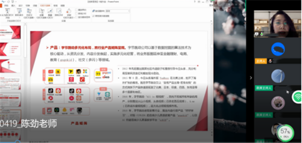 陈老师博学多闻,对创新理论和实践颇有建树。他治学严谨、观点直接、切中要害,引来同学们的啧啧称赞。陈老师的课程结构紧凑、互动性强,使得教学互动、讨论发言和小组演讲等环节精彩纷呈。云端课堂呈现出一派生机勃勃的景象。