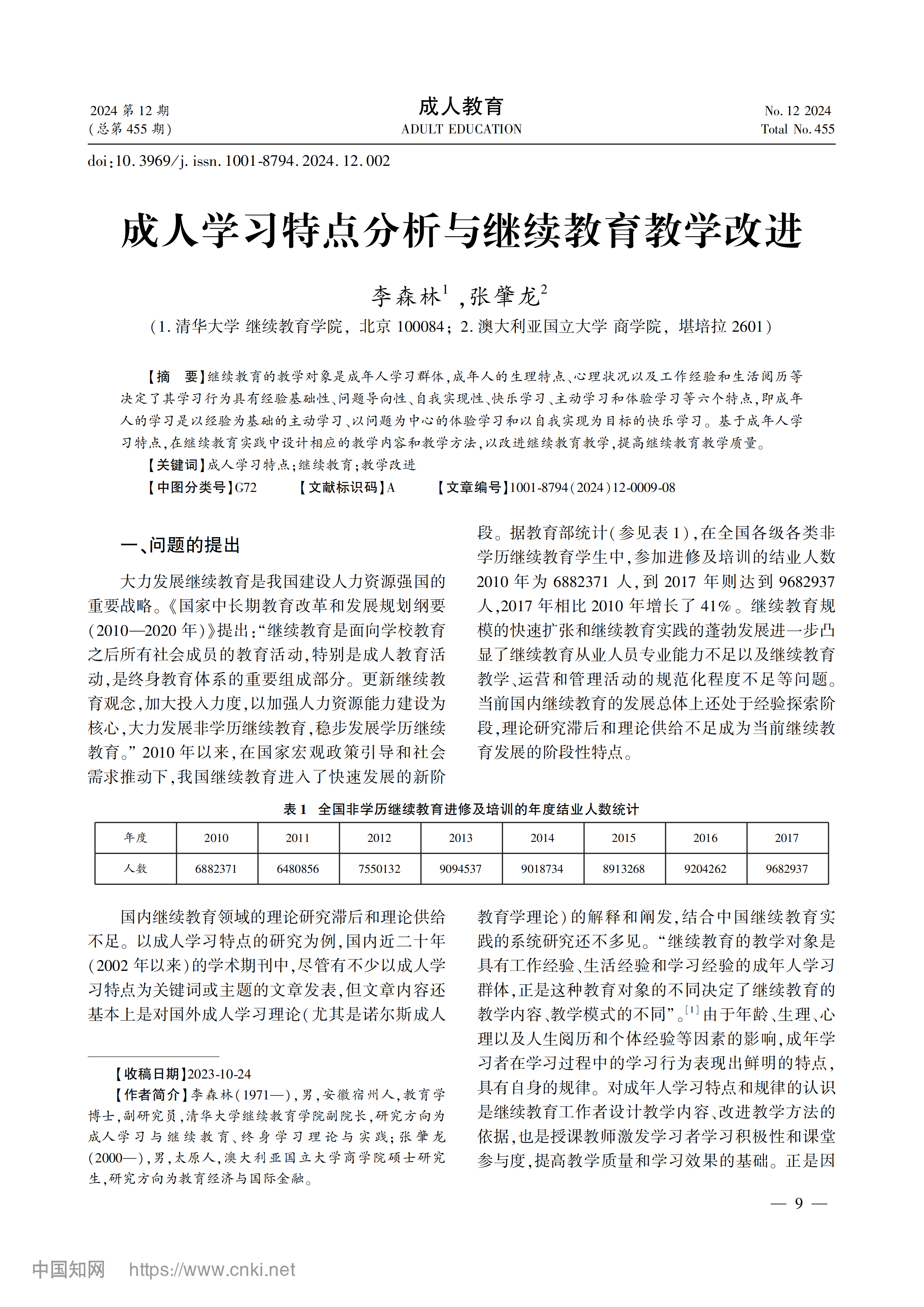 【学术论文】李森林:成人学习特点分析与继续教育教学改进